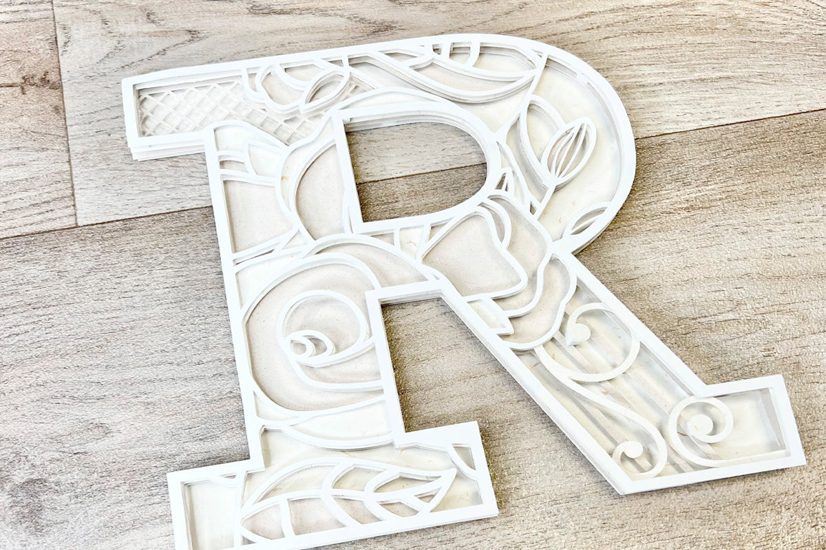 Una bonita letra tridimensional para hacerla con tu plotter de corte (tanto si es Cricut como Silhouette). La letra tiene 6 capas que deberás sobreponer una sobre otra para conseguir el efecto 3D. También puedes reducir el número de capas a tu gusto. Yo, por ejemplo, según el proyecto uso 4 capas (desecho 2 a mi elección) y en otros más elaborados uso las 6 capas.