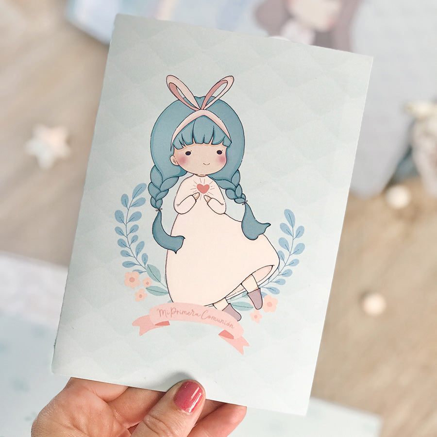 VERSIÓN GRACE: Recordatorio para imprimir "CHIBI - Mi primera comunión". Tamaño plegado 11,5 cm x 16 cm. Para fotos de 10 cm x 15 cm. Será un bonito recuerdo de su primera comunión. En el descargable encontrarás una hoja extra para incluir un pequeño poema en su interior.