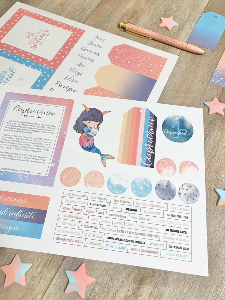 CAPRICORNIO: La colección de recortables digitales "CHIBI - Zodíaco" tiene más de 60 recortables a color. ¡Es perfecta para completar los papeles de la colección!
