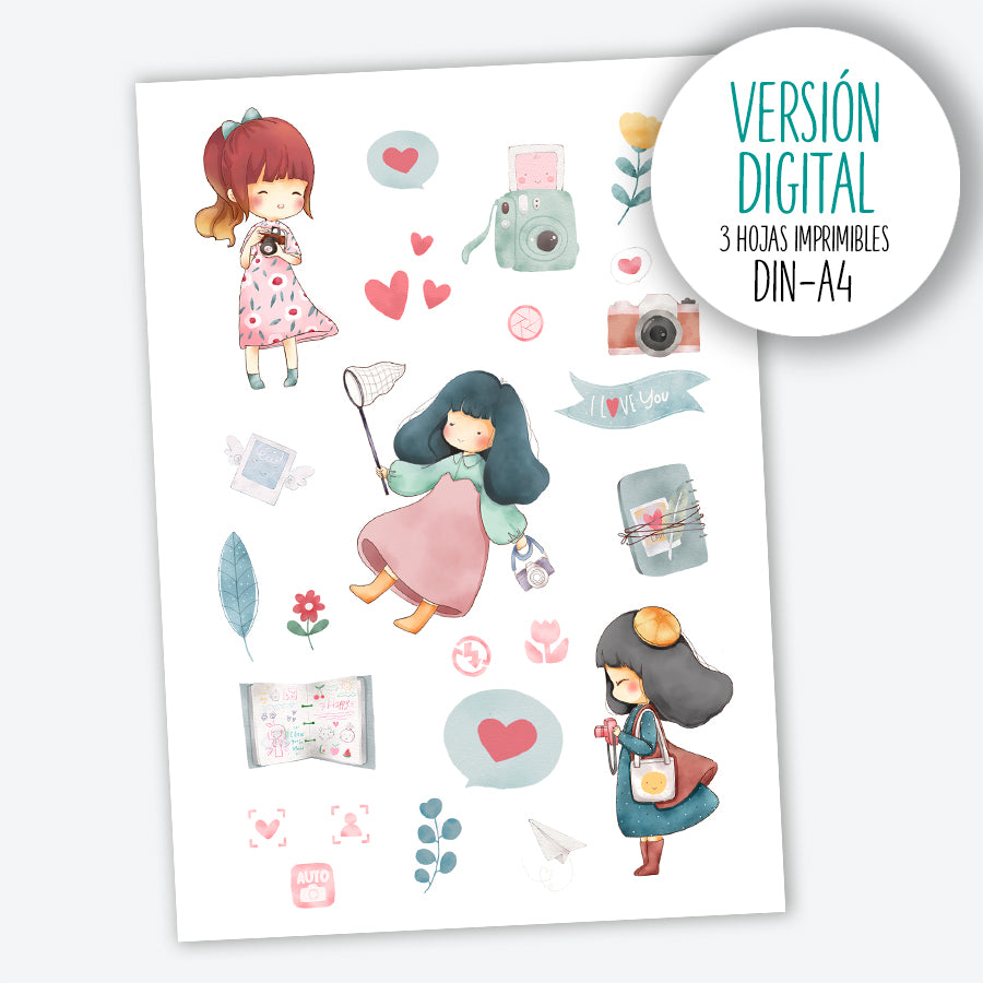 RECORTABLES CHIBI - ORIGINAL: 1 papel digital con las figuritas de la colección. 1 hoja pensadas para que las descargues y las imprimas tu misma/o en Din-A4 (21 cm x 29,7 cm). Es perfecta para álbumes de scrapbooking, tarjetas o, simplemente, para usarla como fondo para tus creaciones. Las texturas y los diseños de esta colección son perfectas para ese proyecto que tienes en mente.