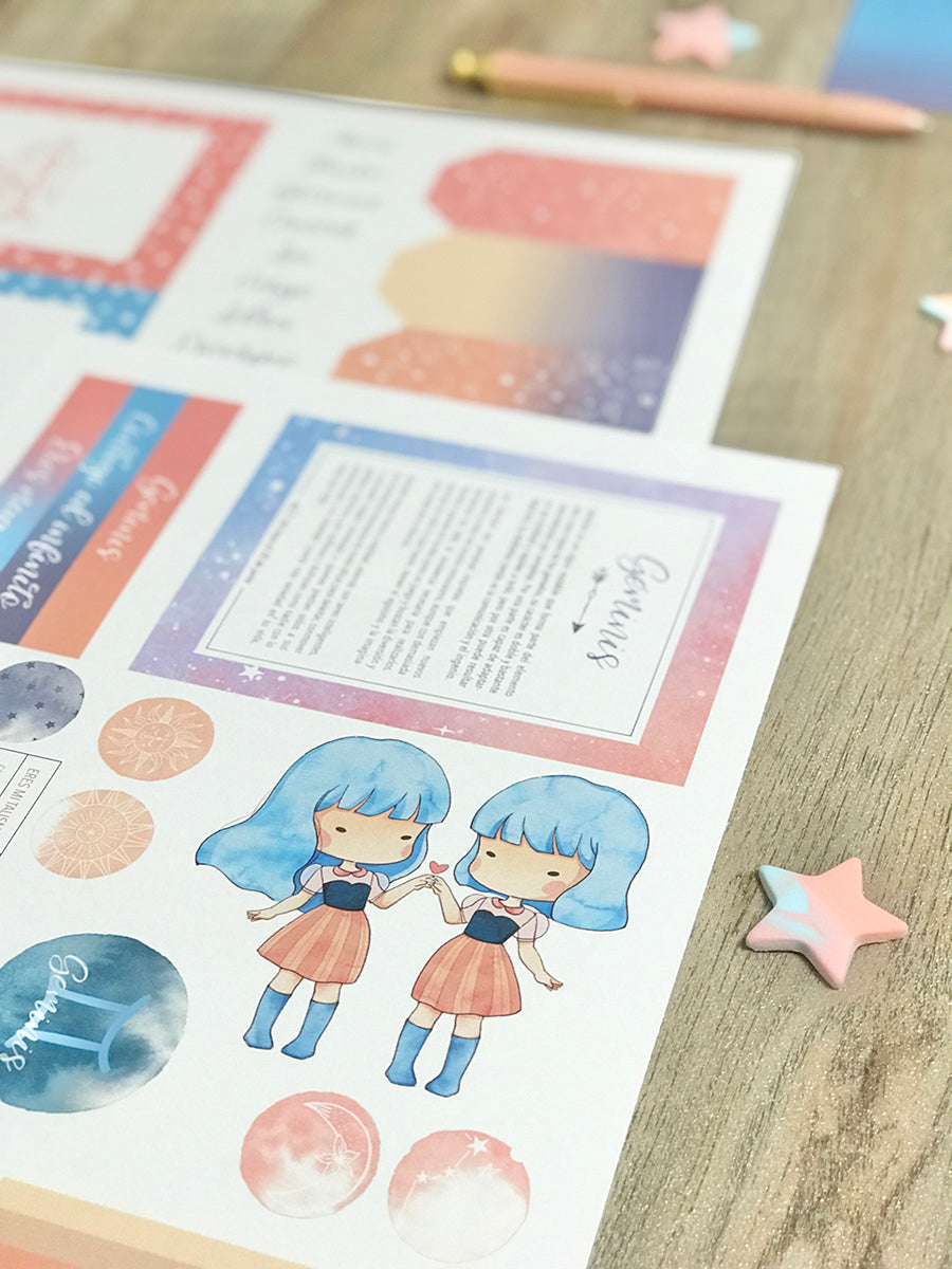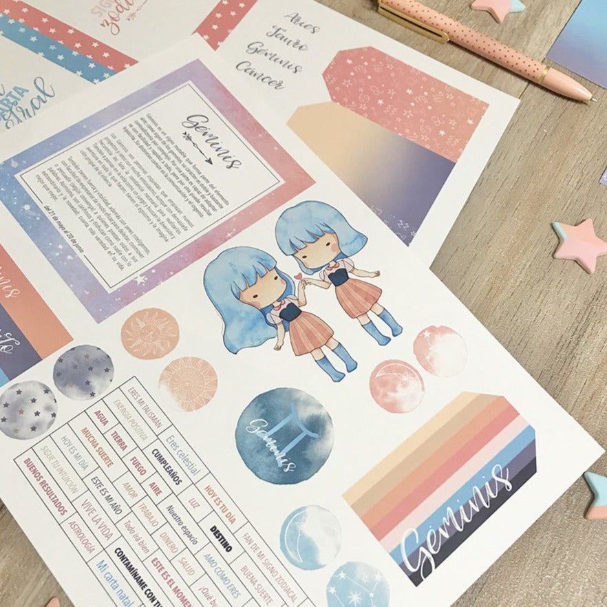 GÉMINIS: La colección de recortables digitales "CHIBI - Zodíaco" tiene más de 60 recortables a color. ¡Es perfecta para completar los papeles de la colección!