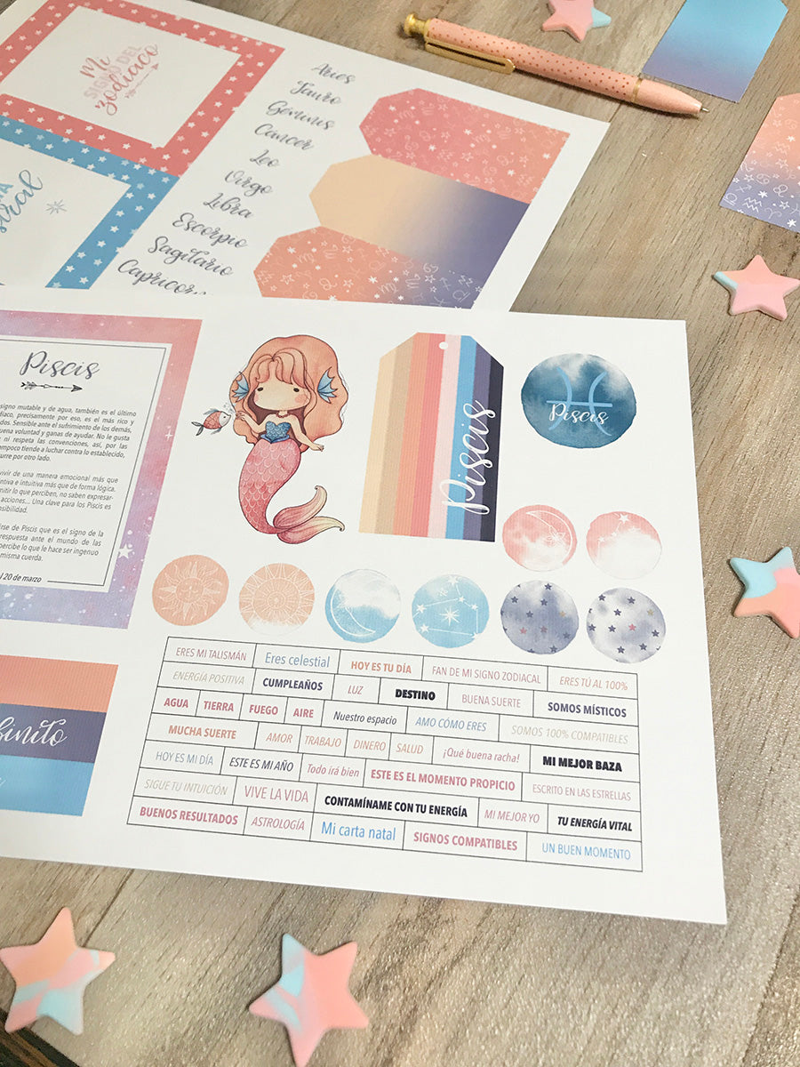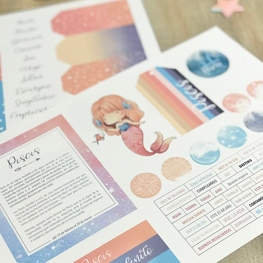PISCIS: La colección de recortables digitales "CHIBI - Zodíaco" tiene más de 60 recortables a color. ¡Es perfecta para completar los papeles de la colección!
