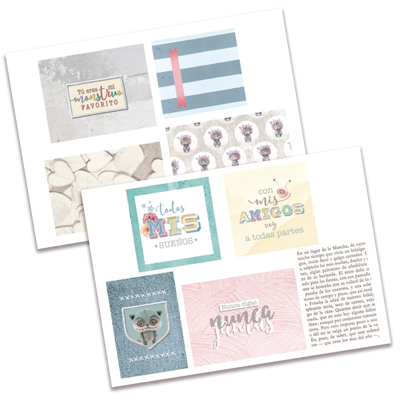 LasTarjetas de TIMBUKTÚ son perfectas para complementar tus álbumes de scrapbooking u otros proyectos. Imprímelas y córtalas a tu gusto.